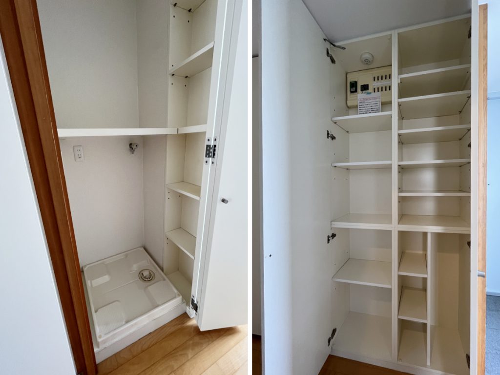 廊下には収納や水まわりが。佇まいがすっきりとしています。