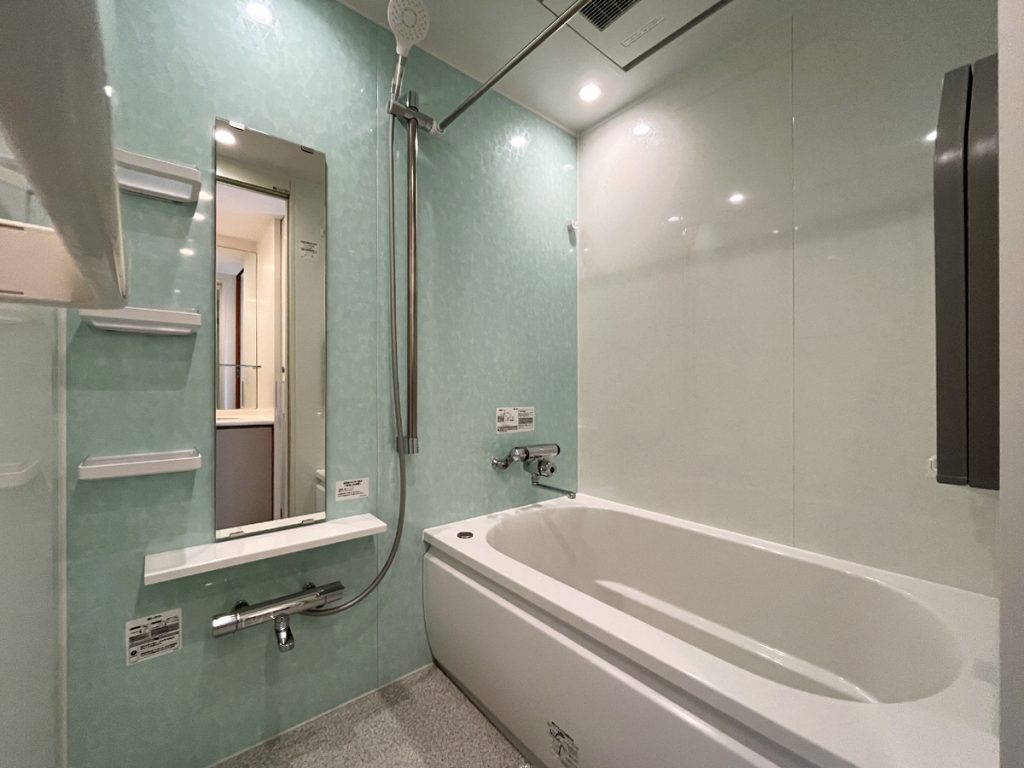 トイレには印象的なライティングをくれる小窓。ブルーの浴室に、さっぱりとしたデザインの洗面台。洗濯機まで扉で隠してしまうなど、水まわりも徹底的なスマートっぷり。どこを見てもサッと格好良くきめてくる部屋の存在に、気持ちも後押しされそう。