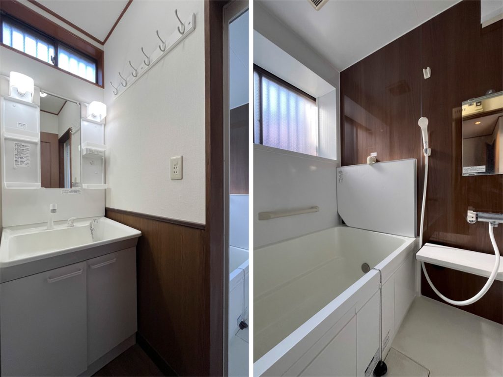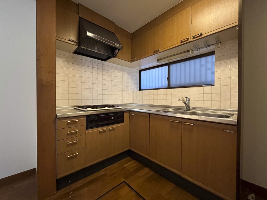 トイレが一つなのと、洗面台のある脱衣所がコンパクトなので、朝はご家族で仲良く奪い合ってください。バスルームはわりとゆったりしています。キッチンがL字になっていて収納が多くて使い勝手が良さそう。スーパーも近いしお料理はかどりそうだなぁ。