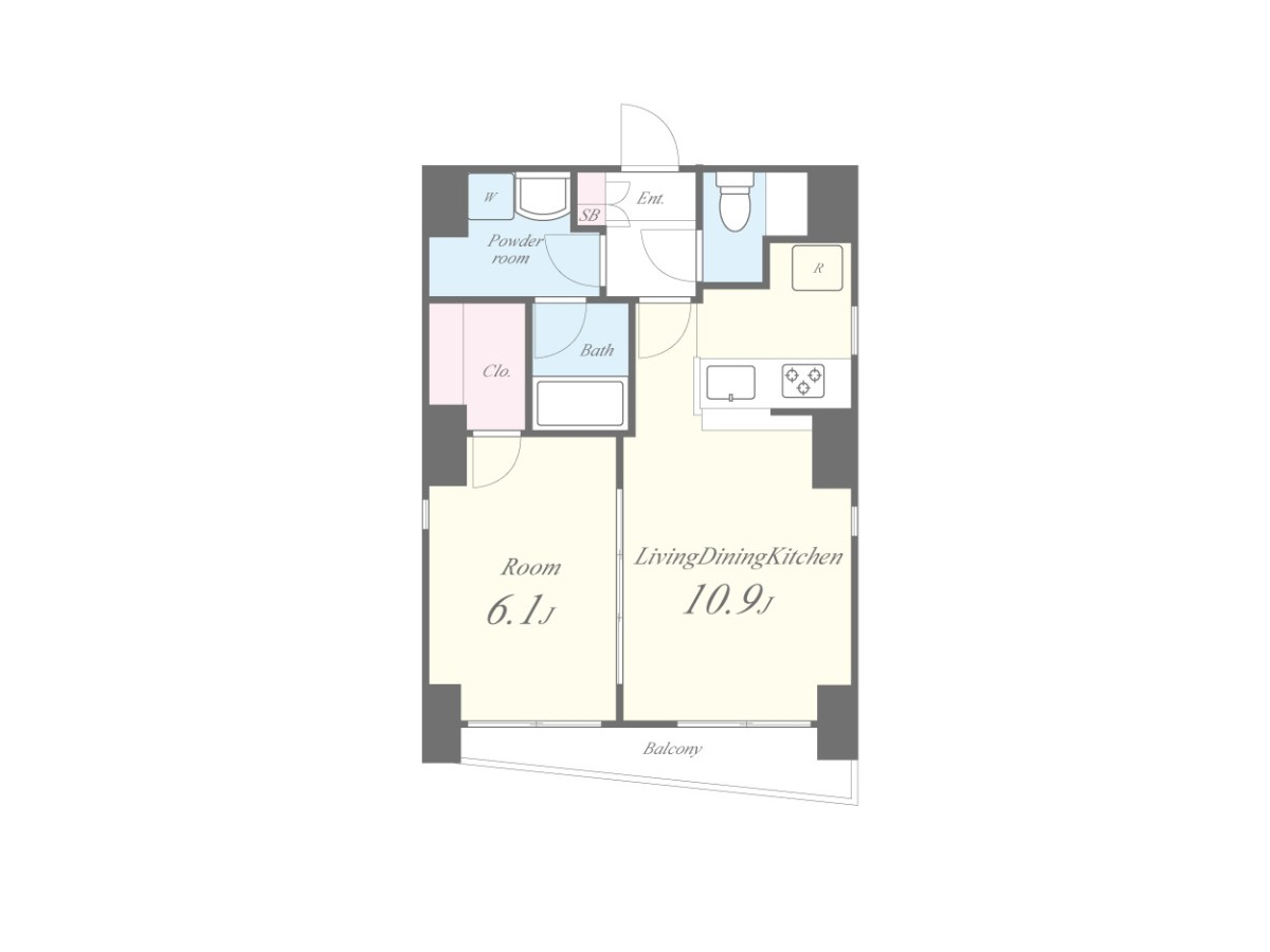間取りはシンプルな1LDK。オートロックあり、エレベーターあり、立地もいい経堂の街と、快適に安心して暮らすことができます。ひとりならゆったりと、ふたり暮らしならちょうど良く過ごせそうです。