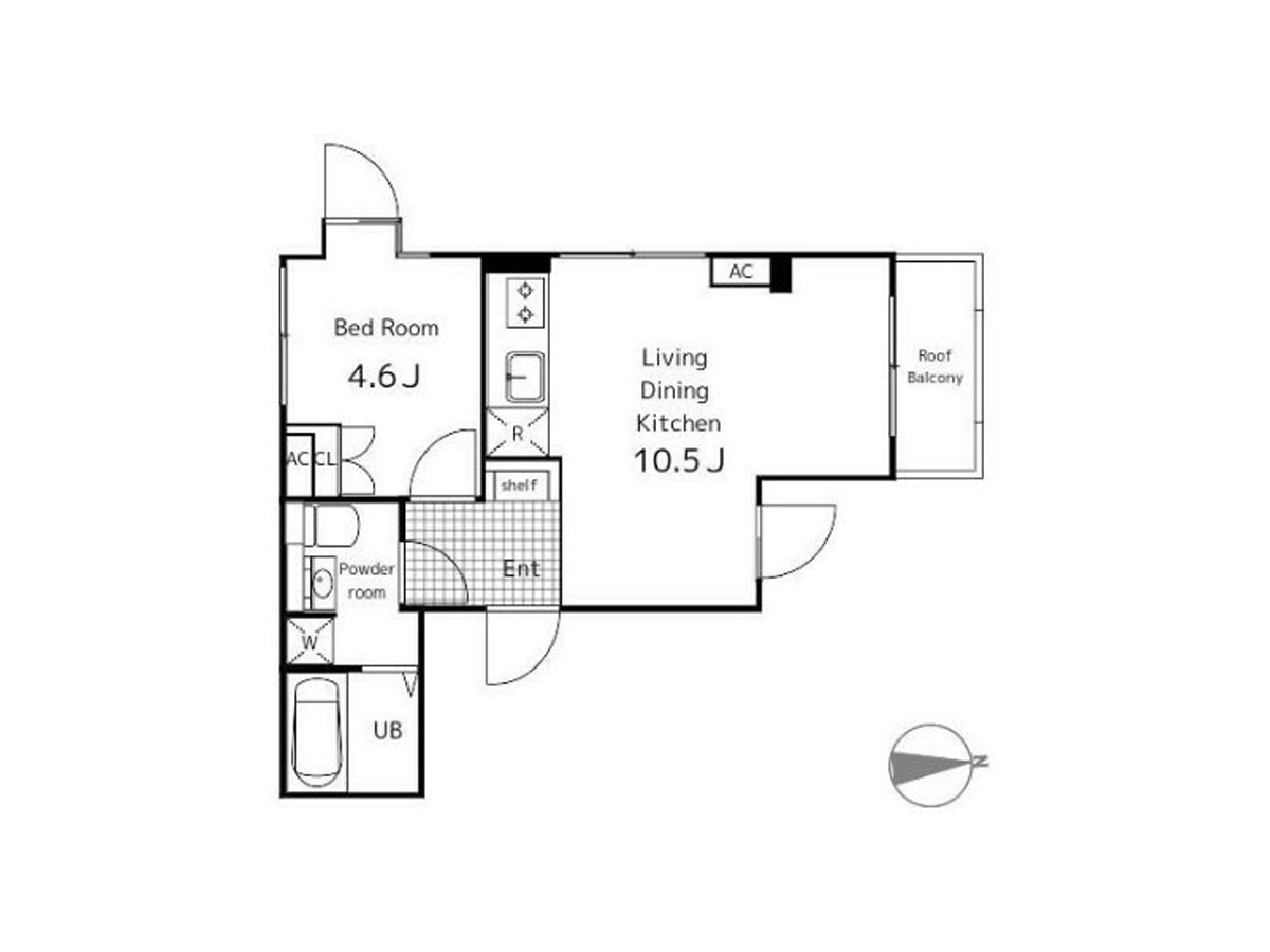 間取り図をみるとチャカ(拳銃)のような形をしていて、面が多くて窓も多め。玉の出る(でないけど)先っちょはルーフバルコニーになっています。