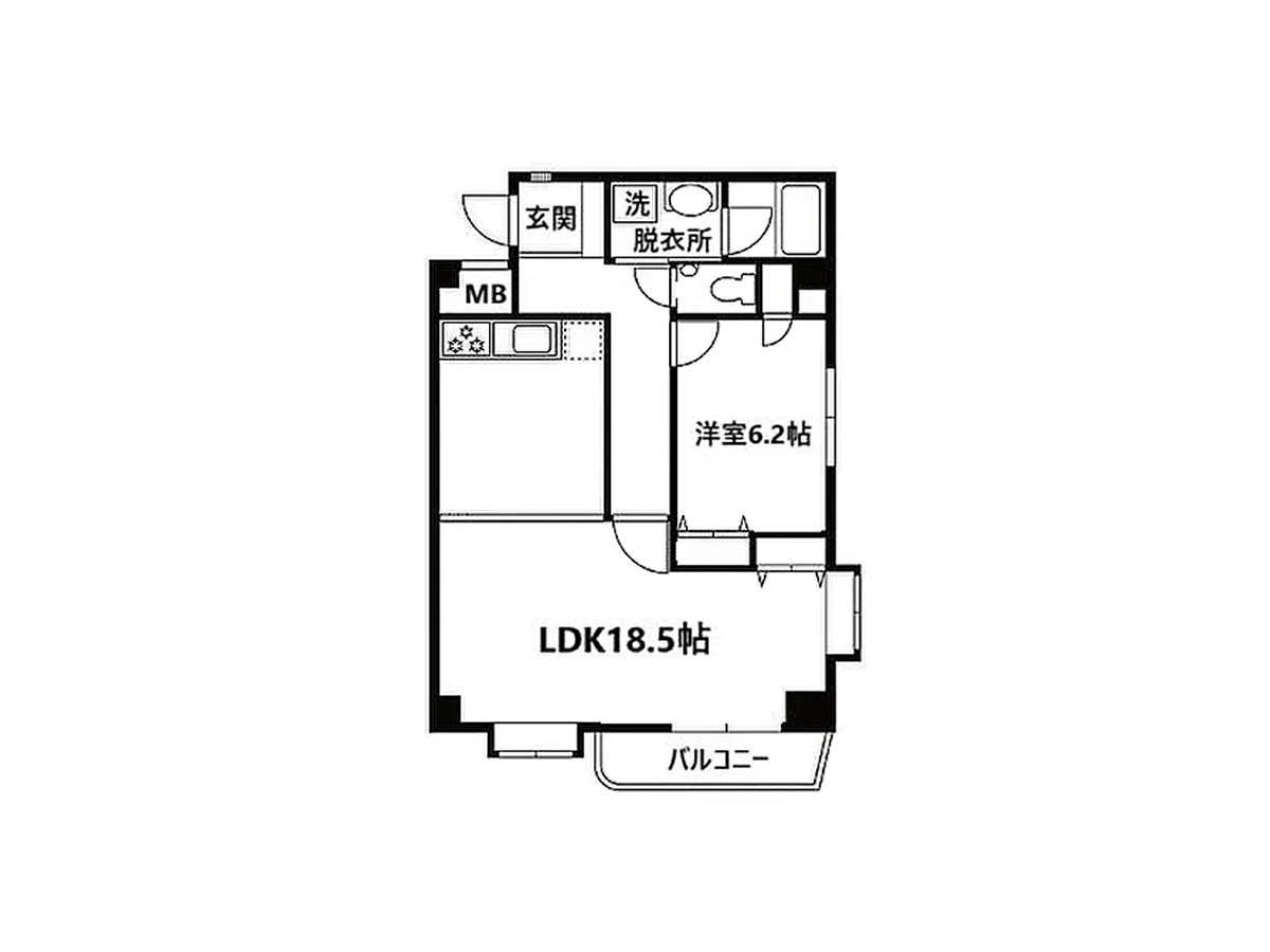 寝室メインとなる6.2帖はシンプルながらも、ちょっと上品でモダンな印象。天井埋め込みのエアコンが、部屋の上品さを担っています。水まわりは小回りの効くほどよい広さ。ですが、浴室だけ従来の物より少しコンパクトな印象です。