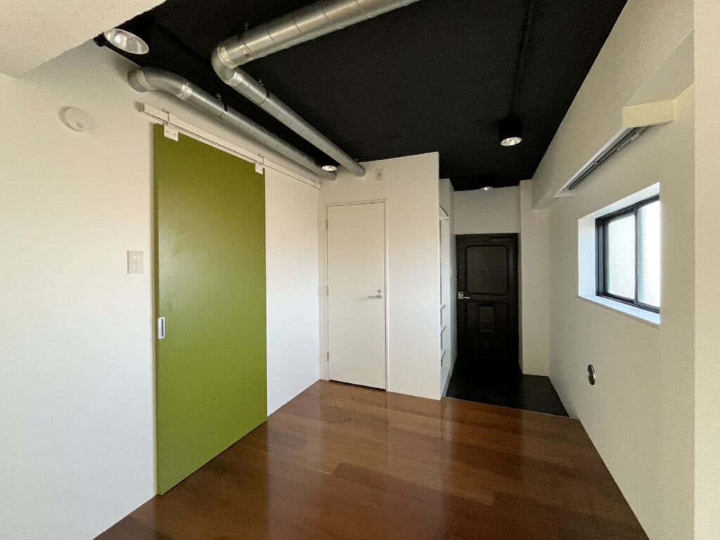 ワンルームは玄関から居室まで扉のない、大胆なつくり。開放的な空間は、ひとり暮らしの住まいで自然と手足が伸びるような、のびのびとした心地が生まれます。