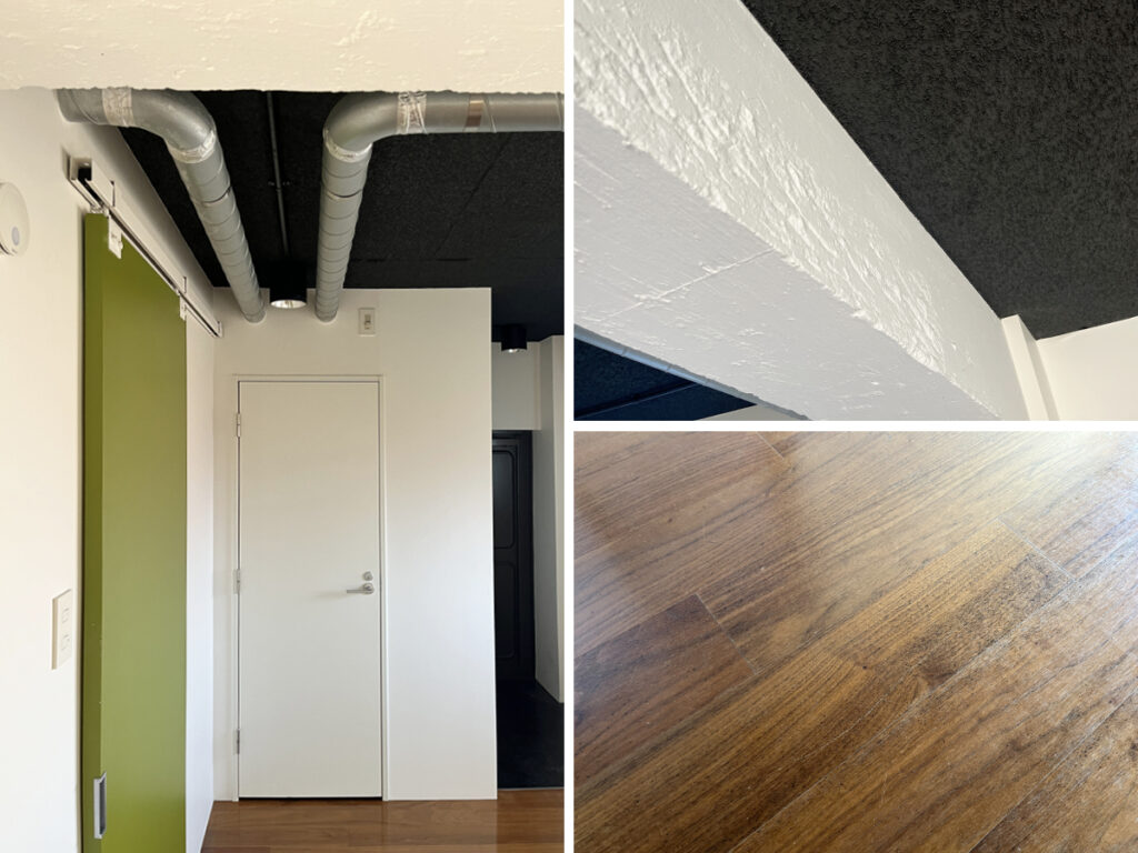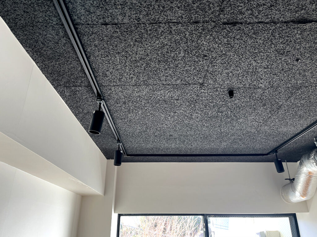 日差しは南からのものが入りますが、午前中でも控えめな印象。でもこの日差しの量が、白い漆喰の壁や空間をグッと演出する黒い天井の内装にぴったり合っていて、いい空気感が部屋じゅうに漂っていました。